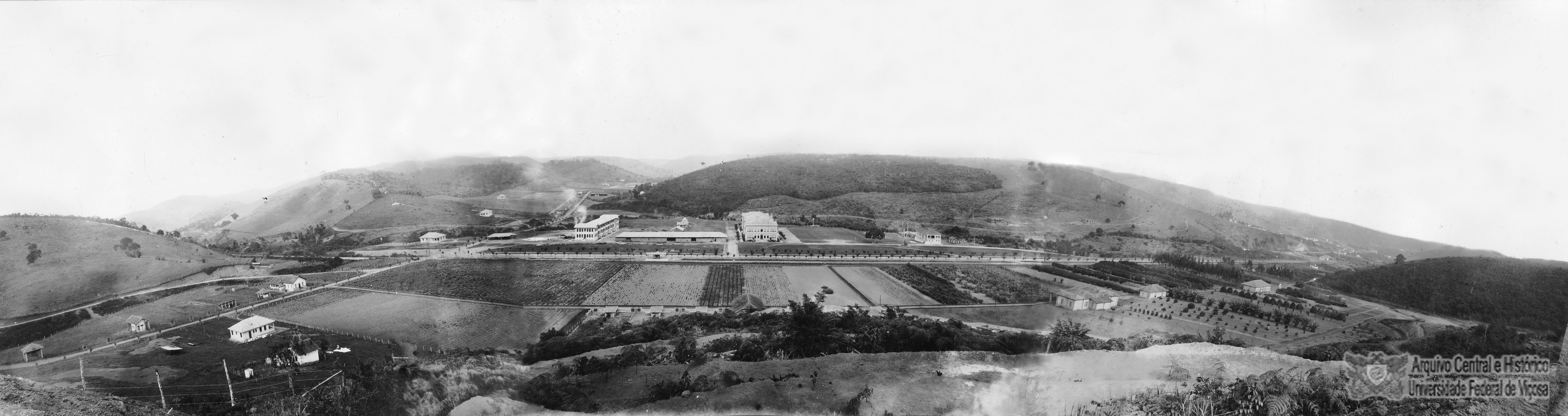 Vista geral do Campus da ESAV. Nota-se casas das fazendas primitivas, as edificações Escola e todas as construções em andamento.