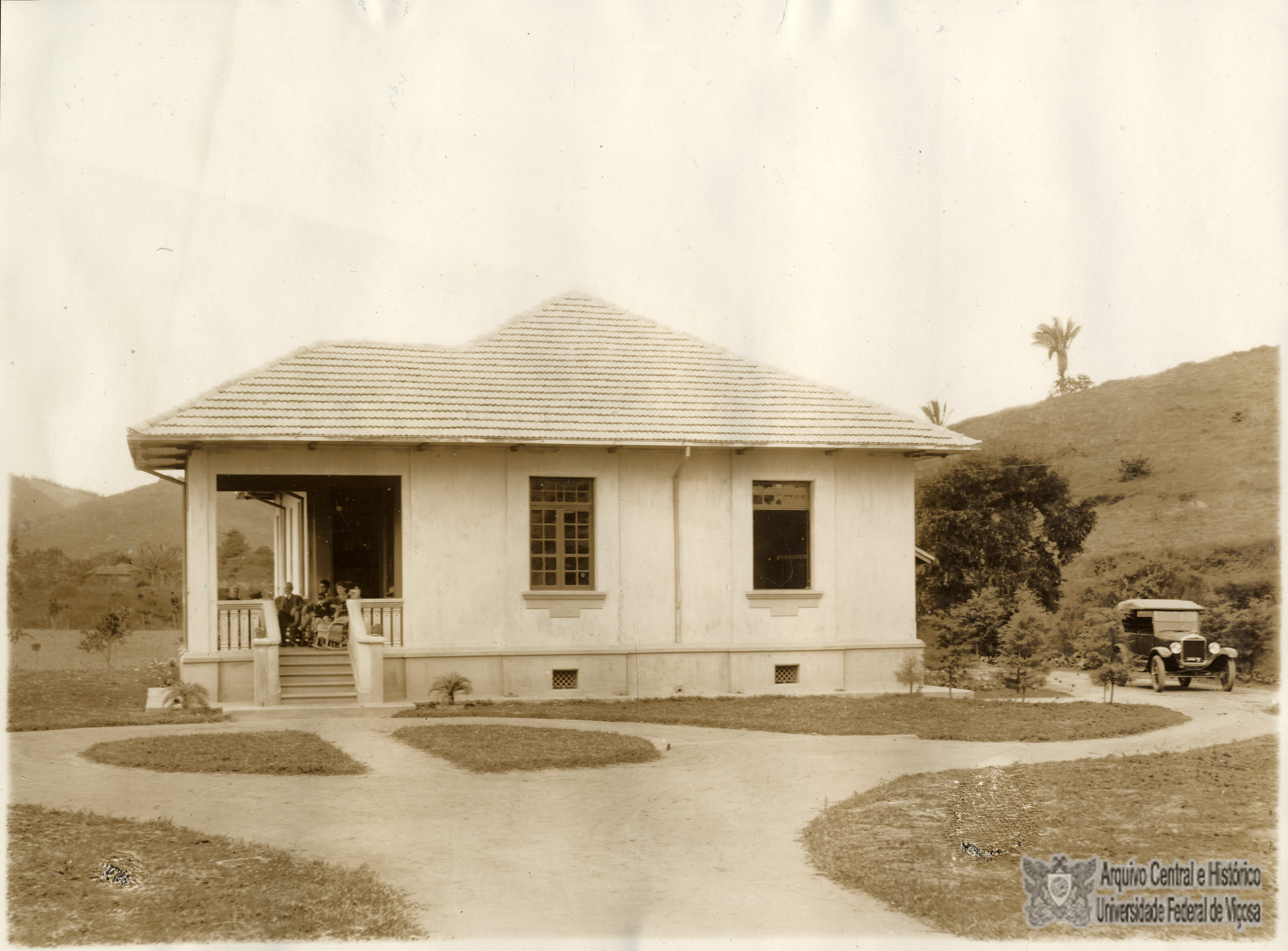 Residência do vice-diretor. Da esquerda para a direita: Effie Rolfs, Peter Henry Rolfs, Bello Lisboa e sua esposa Maria da Conceição Damásio Bello Lisboa, com um filho, provavelmente João Carlos Bello Lisboa.