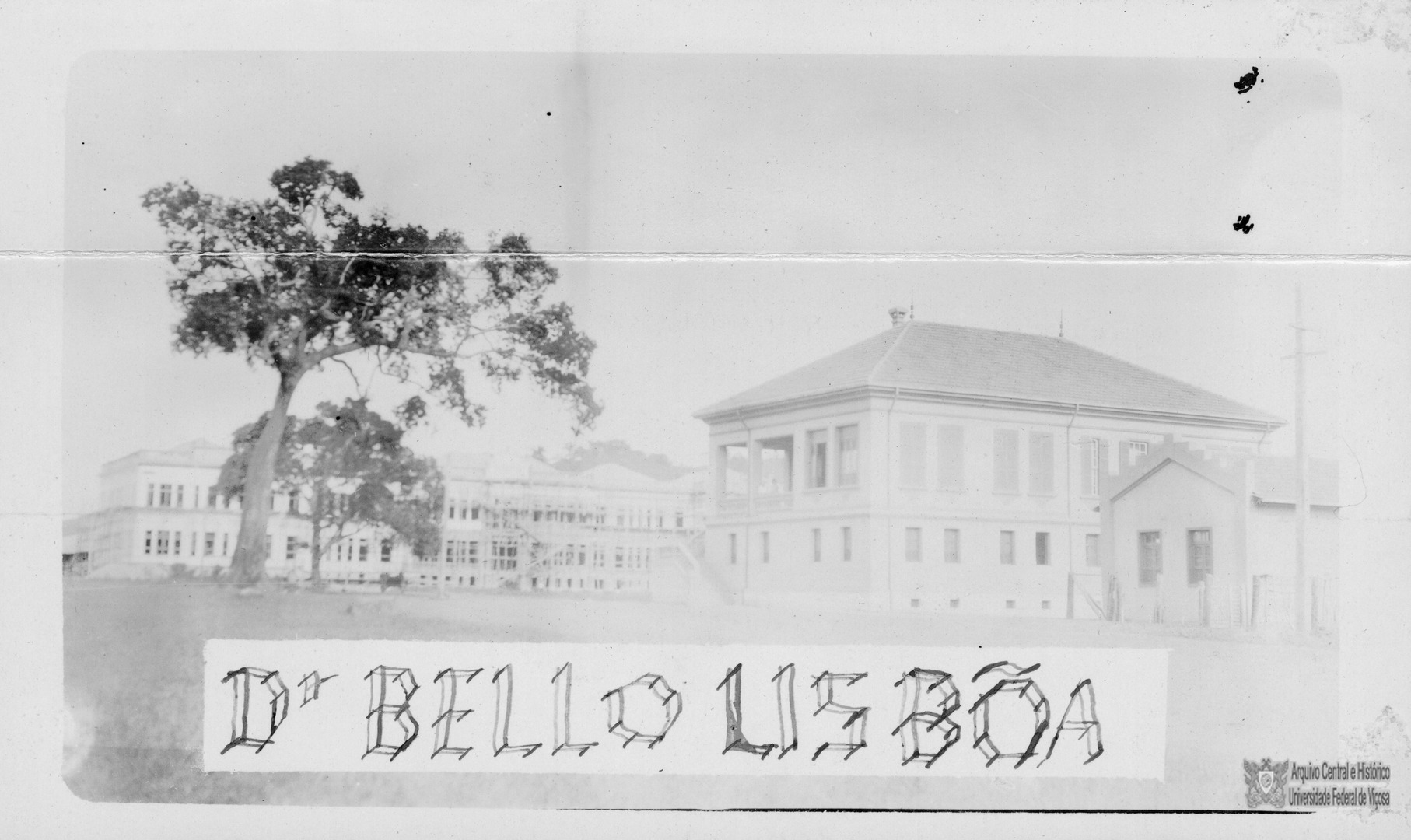 Vista parcial do Prédio Principal ao fundo, Paineira, Residência e Biblioteca do Diretor.